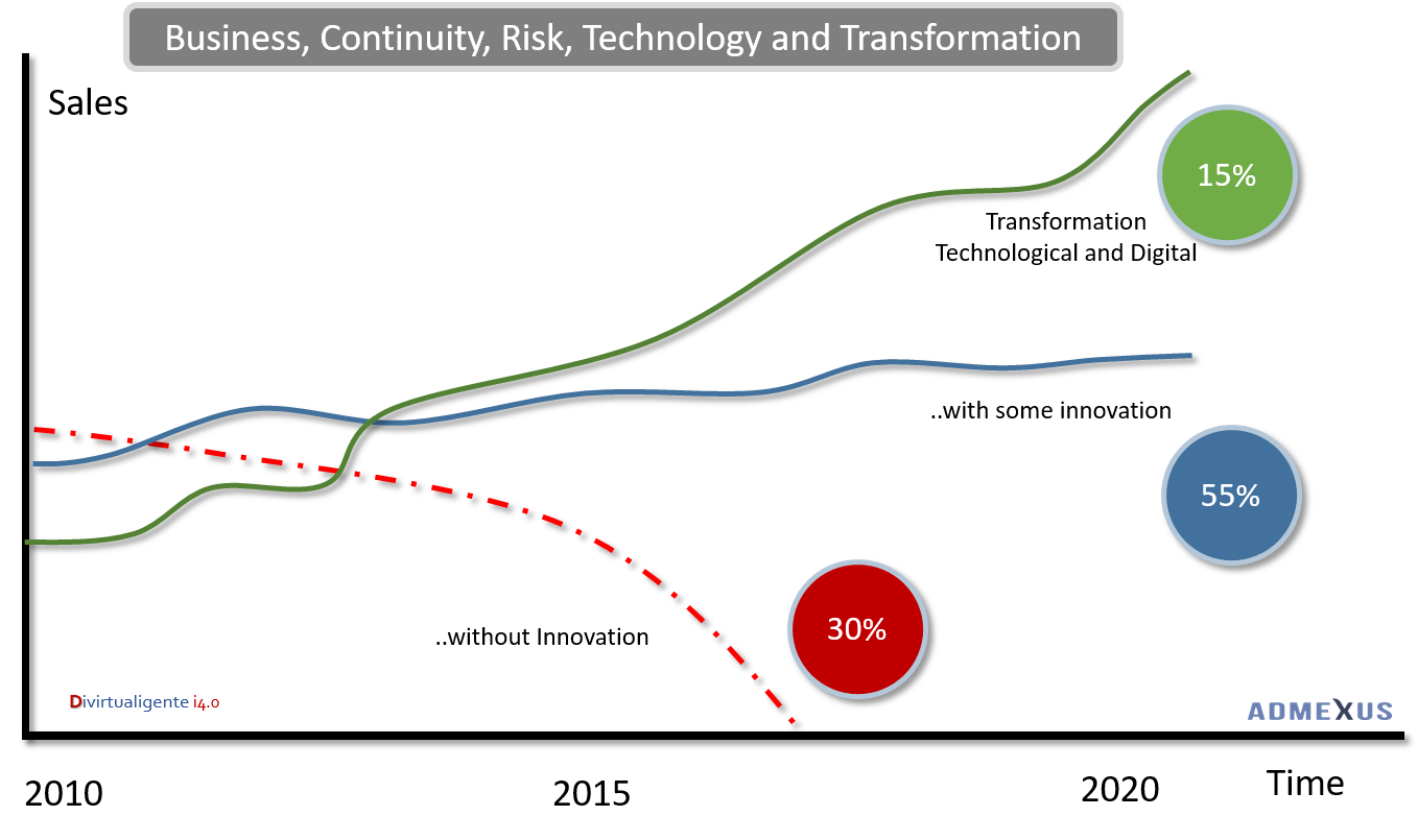 The Divirtualigente I4.0 manager of Technological and Digital Transformation, is a certified expert responsible and capable to integrate the appropriate projects in the company. It uses a detailed strategy mapping, together with a systematic analysis of the value-added processes, set accurate plan and execute transformation activities under the financial cost assignment.